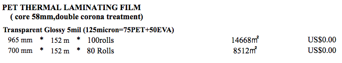 Transparent Polyester Thermal Lamination Film | ||||||||